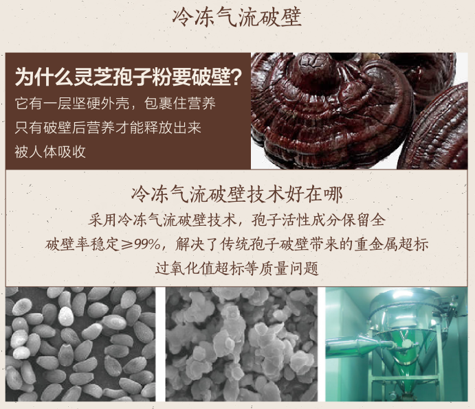 灵芝孢子粉是灵芝发育后期弹射释放出来的种子,生物学上称为担孢子,集中起来后呈粉末状,通称灵芝孢子粉。 孢子内含有比灵芝更丰富的多糖肽、腺嘌呤核苷、蛋白质、酶、三萜类、有机锗、微量元素等特殊成份,经研究证明具有增强免疫力和改善睡眠的作用。